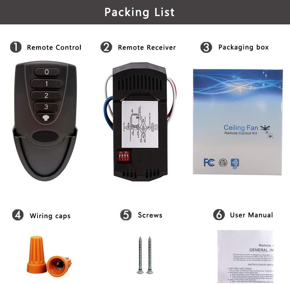 Verify settings are correct by turning ceiling fan on/off. Many ceiling fan receivers can have the same basic model number, but will have a separate tag with different version. Adding a ceiling fan to a room is a simple diy wi. The fan receiver, mounted in the fan, will receive the signals from the remote control. 4.3 out of 5 stars.